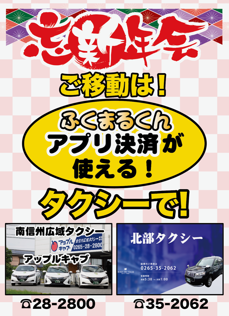 ◇ 加盟店情報 ◇ 忘新年会シーズン到来 ◇ ポイントがたまる、使える、特典いっぱいのふくまるくんカード。阿智・高森・飯田などの各加盟店で使えます。